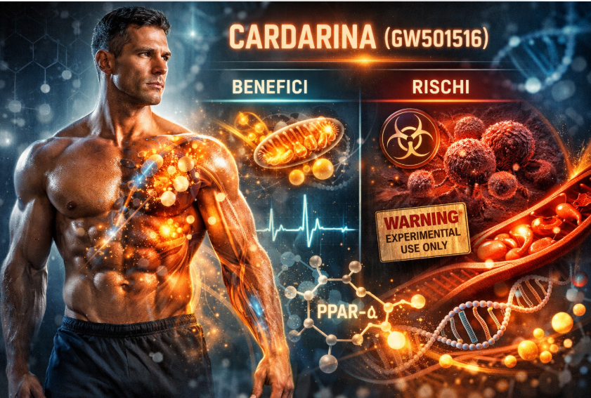 La cardarina è una molecola metabolicamente affascinante, con un razionale biologico solido sul piano del PPAR-δ, ma con limiti clinici importanti legati alla sicurezza e alla mancanza di evidenze umane di lungo periodo.